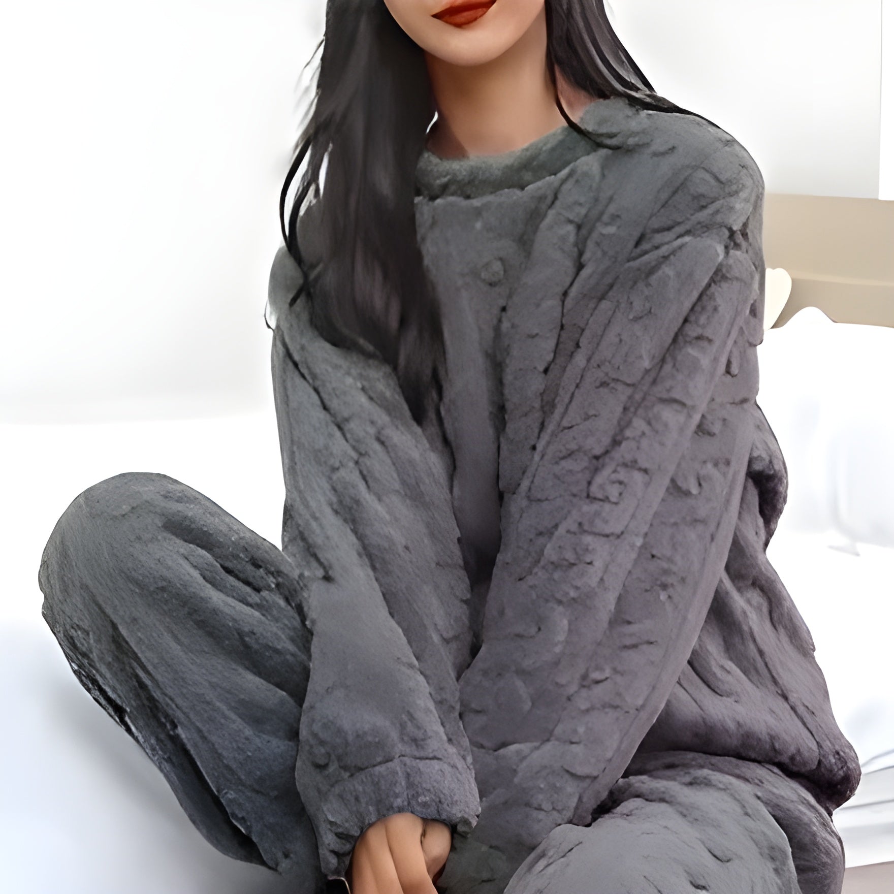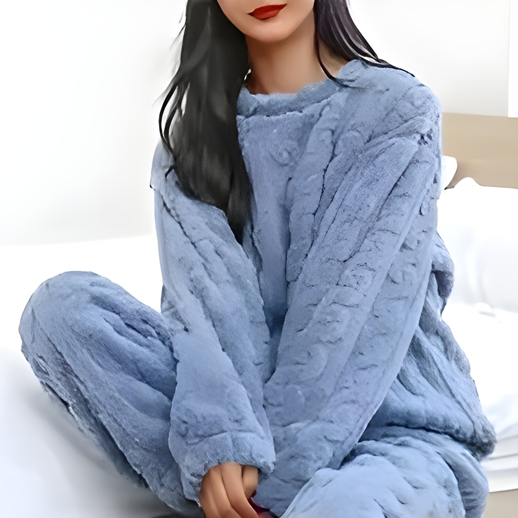 Cloud-Comfort Cable Knit Plush Sleepwear – Cozy Velour Loungewear Set