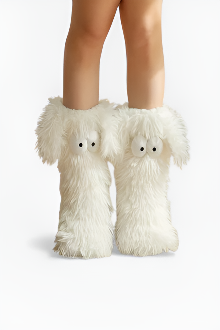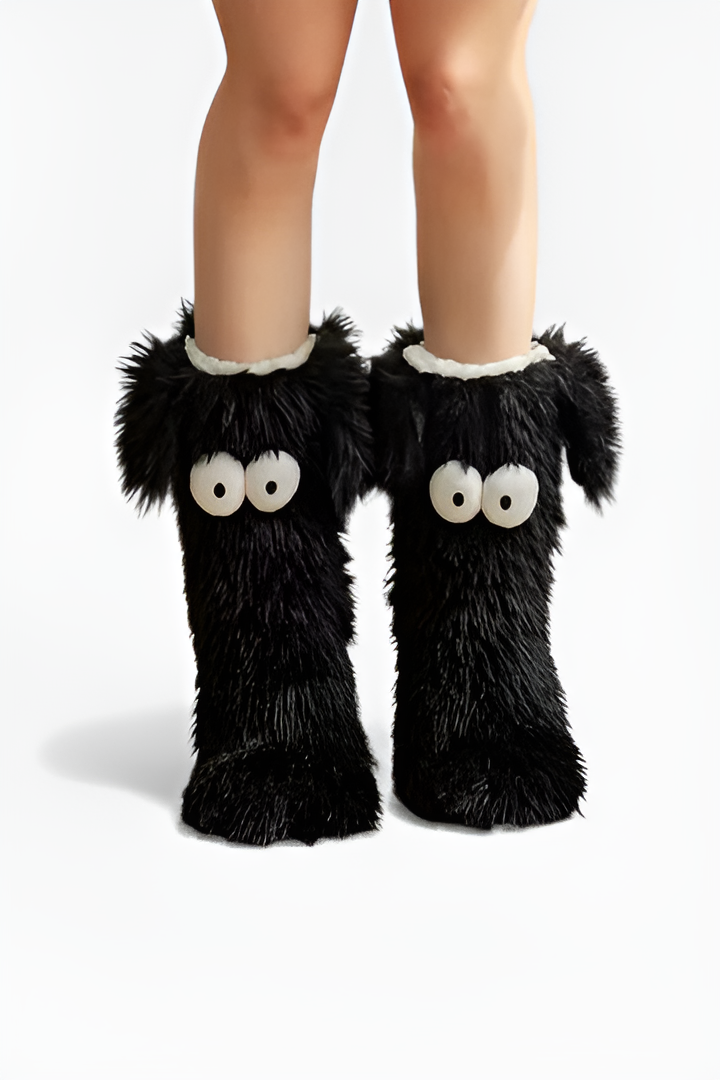 Furry Monster Eyes Plush Boots – Ultra-Soft Faux Fur Statement Booties