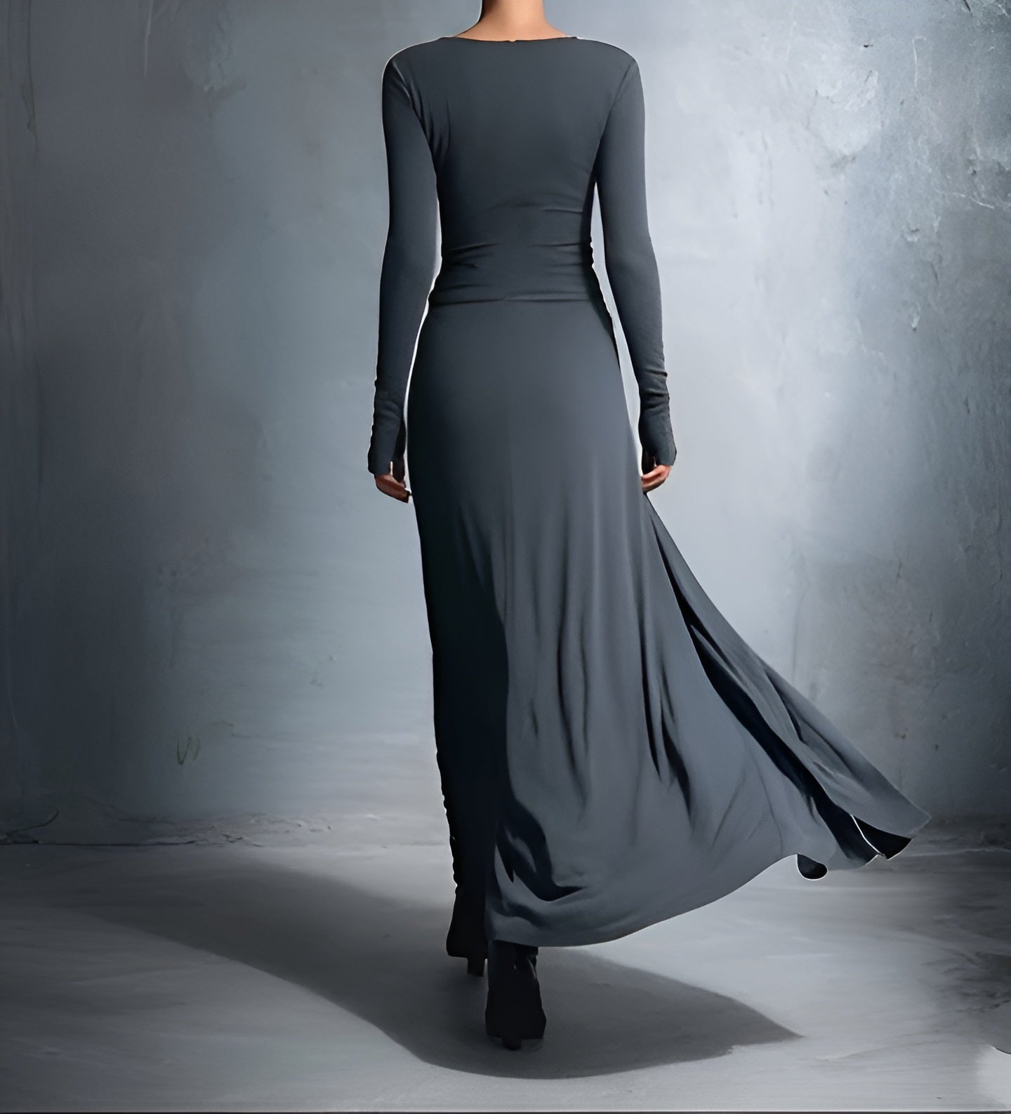 A dress designed for the woman who embraces a clean, modern, and mysterious aesthetic.