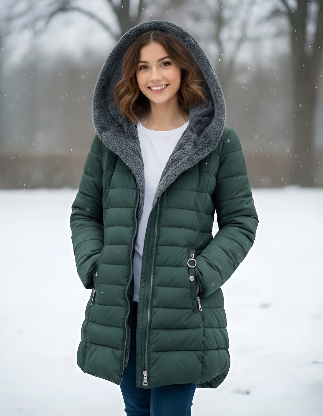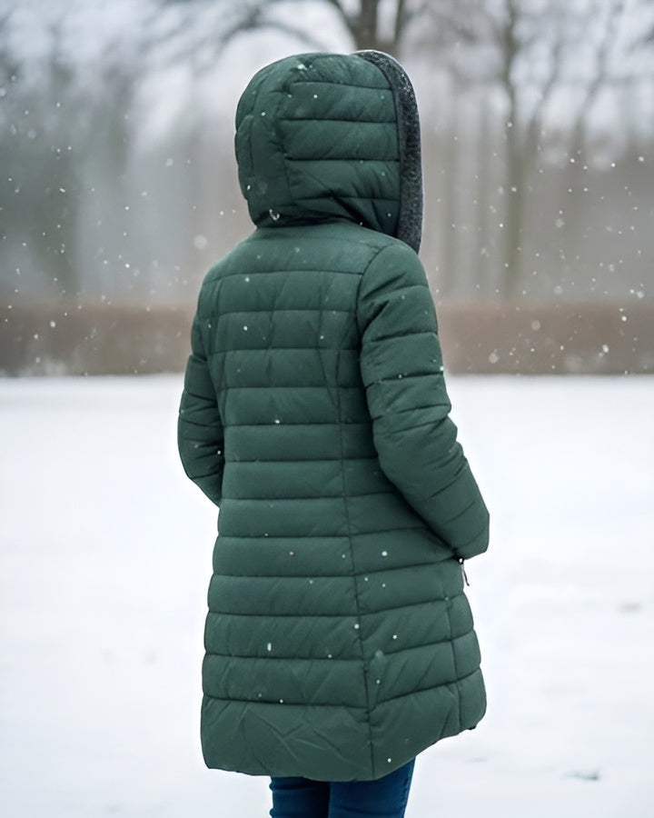 "Women's Luxury Hooded Winter Jacket – Black, Dark Green & Light Mint"